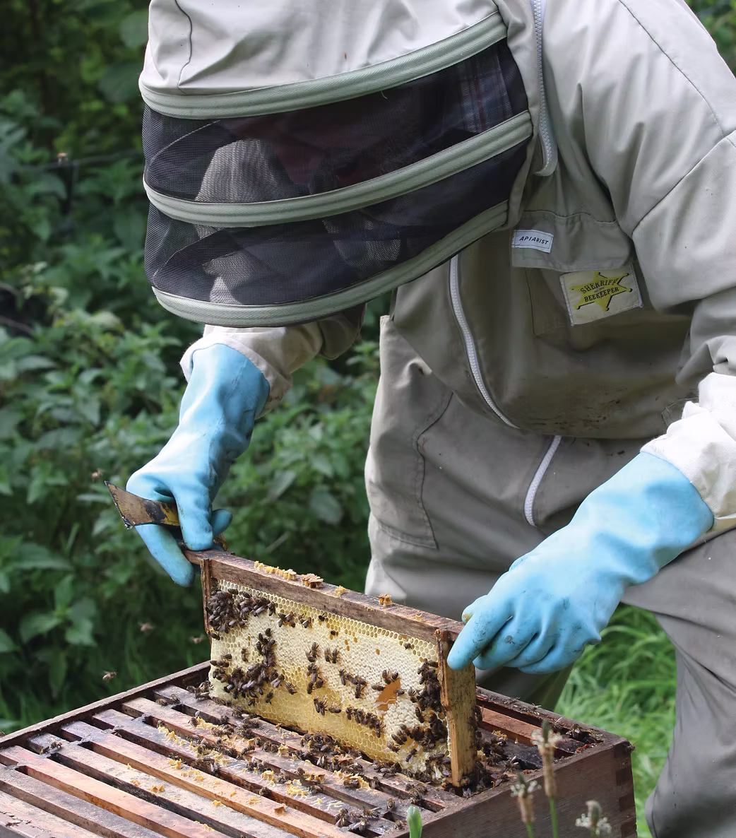 "My name is Peter Hunt and I’m a small bee farmer on the fringe of Dartmoor, with approximately 100 hives (as well as a flock of Jacob/Real Shetland sheep) And I've been caring for and farming bees for approx 18 yrs.